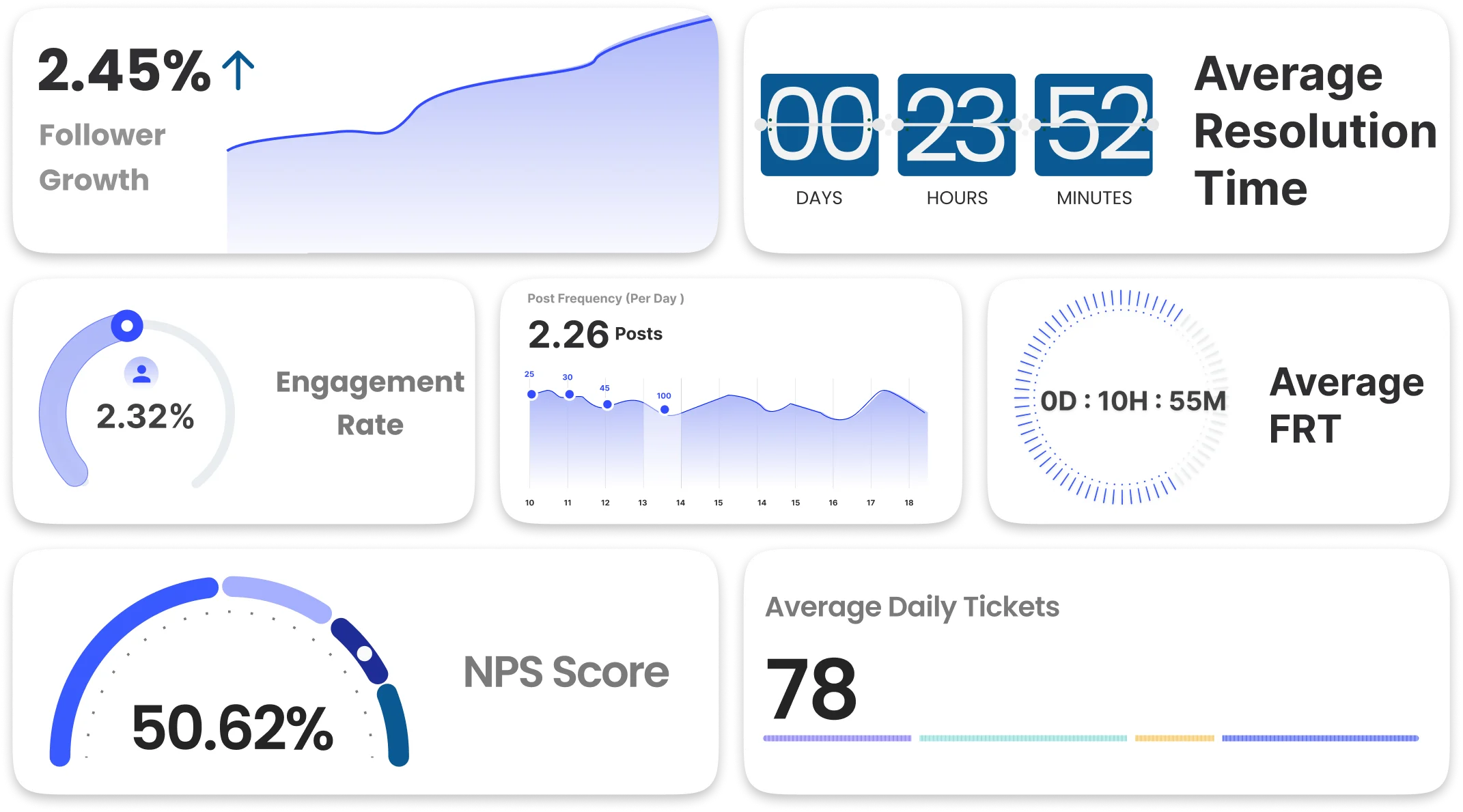 | First Response Time (FRT) | 1 hour, 36 minutes |