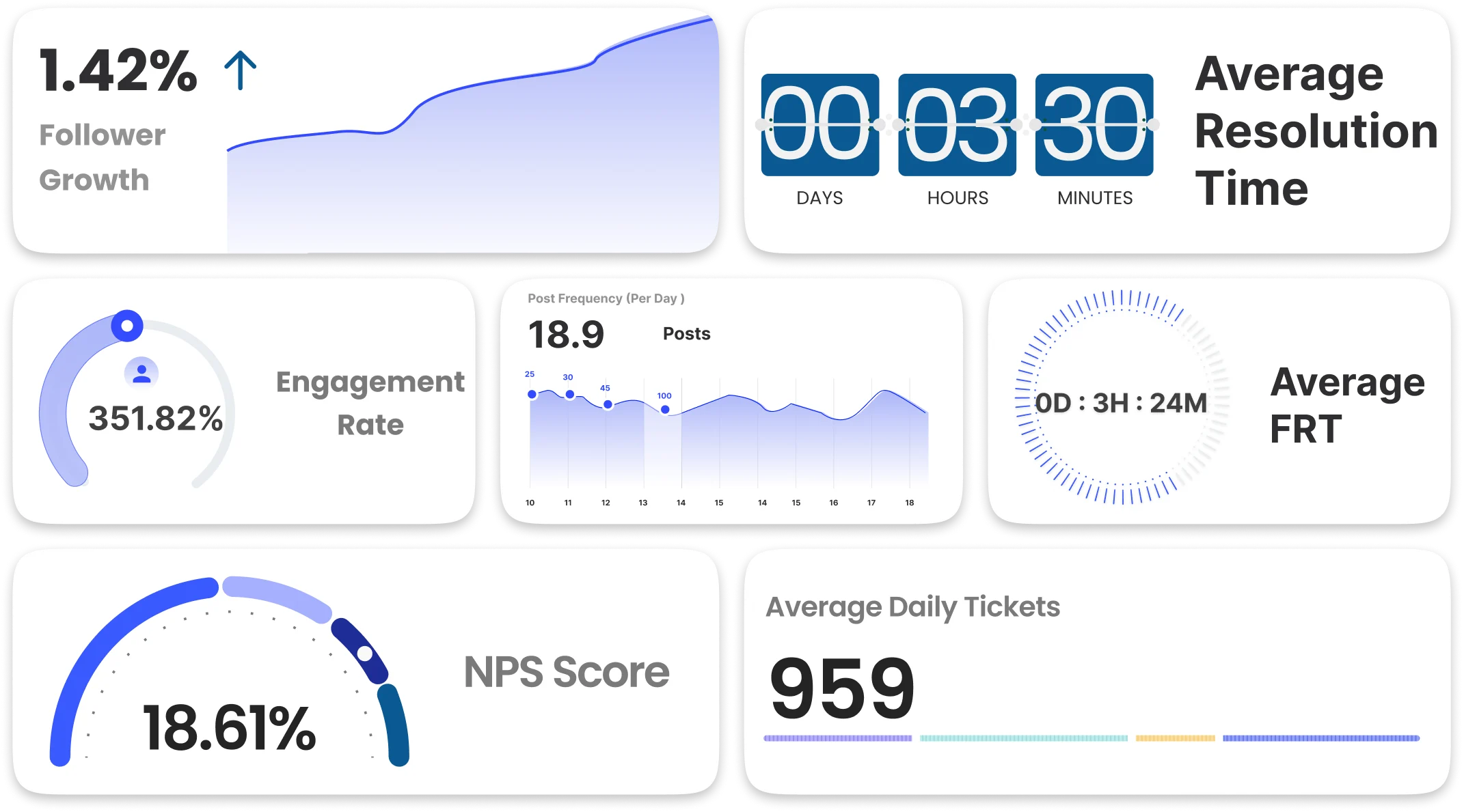 Customer demand is steady and manageable, with ticket volumes well within control. Visibility and content activity are high, as reflected in both follower growth and posting frequency.
