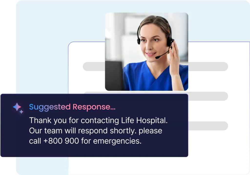 With smart replies and auto-suggestions, you can instantly respond to routine questions like doctor availability, report delivery time, or insurance coverage